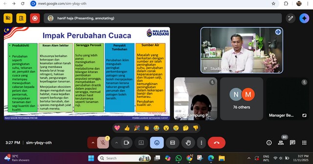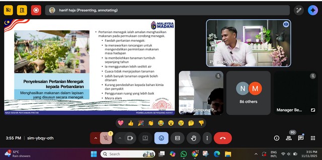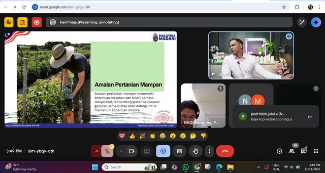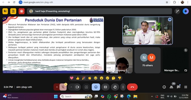 12 November 2025 | Aktiviti TerkiniPada hari Selasa, 11 November 2025, seorang peserta dari NADI Bengoh telah mengambil bahagian dalam kelas Mahir Pertanian Pintar yang berlangsung selama satu jam tiga puluh minit, bermula pada pukul 3:00 petang sehingga 4:30 petang.