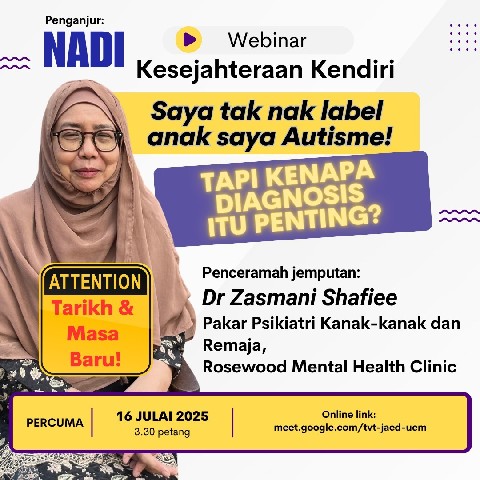 WEBINAR Kesejahteraan Kendiri - Saya Tak Nak Label Anak Saya Autisme – Tapi Kenapa Diagnosis Itu Penting?