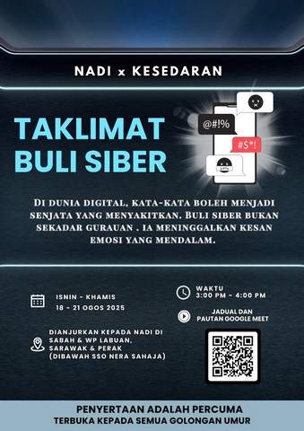 20 Ogos 2025 | Aktiviti TerkiniPada hari Selasa, 19 Ogos 2025, Pusat Sebaran Maklumat Nasional (NADI) Bengoh telah menyertai Program NADI X AWARENESS, dibawah program NADI SAFE & SHIELD, Taklimat Buli Siber dan Pembelian Dalam Talian.