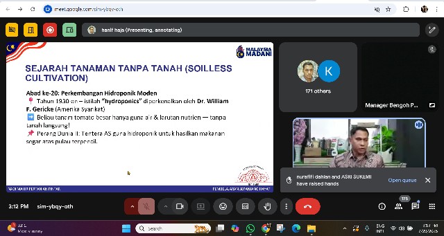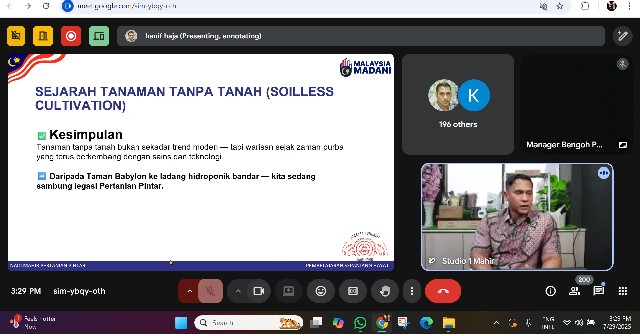 30 Julai 2025 | Aktiviti TerkiniPada hari Selasa, 29 Julai 2025, seorang peserta dari NADI Bengoh telah mengambil bahagian dalam kelas Mahir Pertanian Pintar yang berlangsung selama satu jam tiga puluh minit, bermula pada pukul 3:00 petang sehingga 4:30 petang.